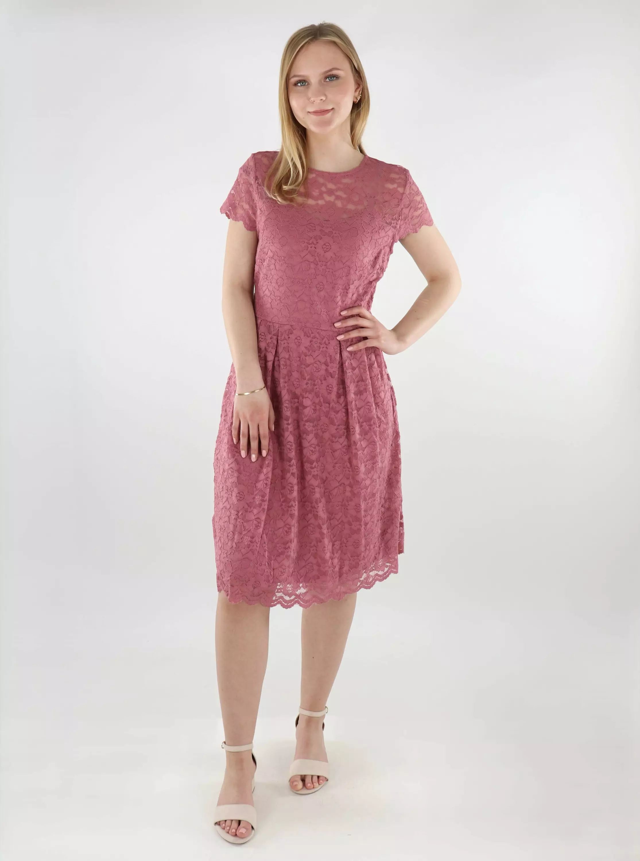 Vilas stretchiga spetsklänning är ett snyggt och bekvämt val för alla fester! Dess A-fåll skapar en vacker siluett, och yttertyget i spets ger klänningen en feminin look.