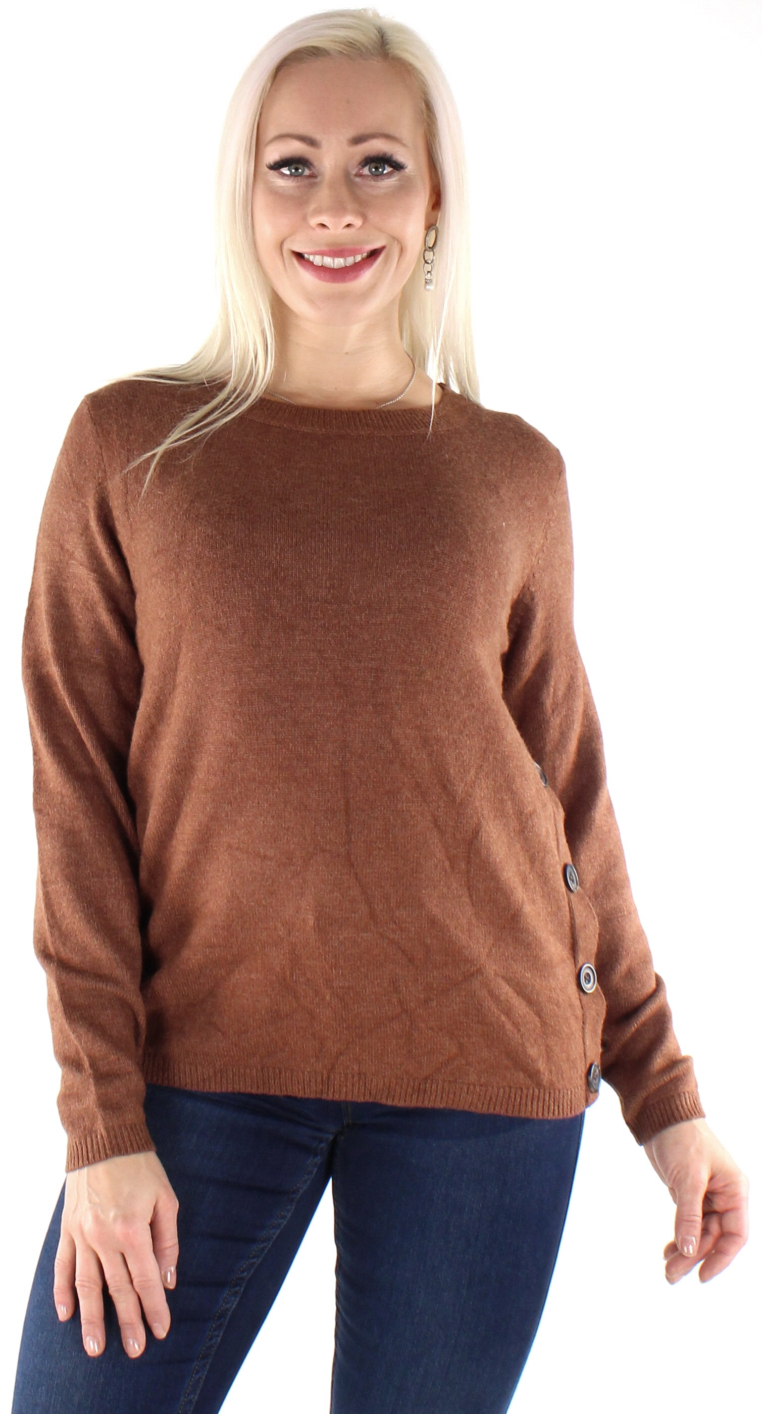 Mjuk stickad tröja med stretch. Dekorativa knappningar på sidorna.