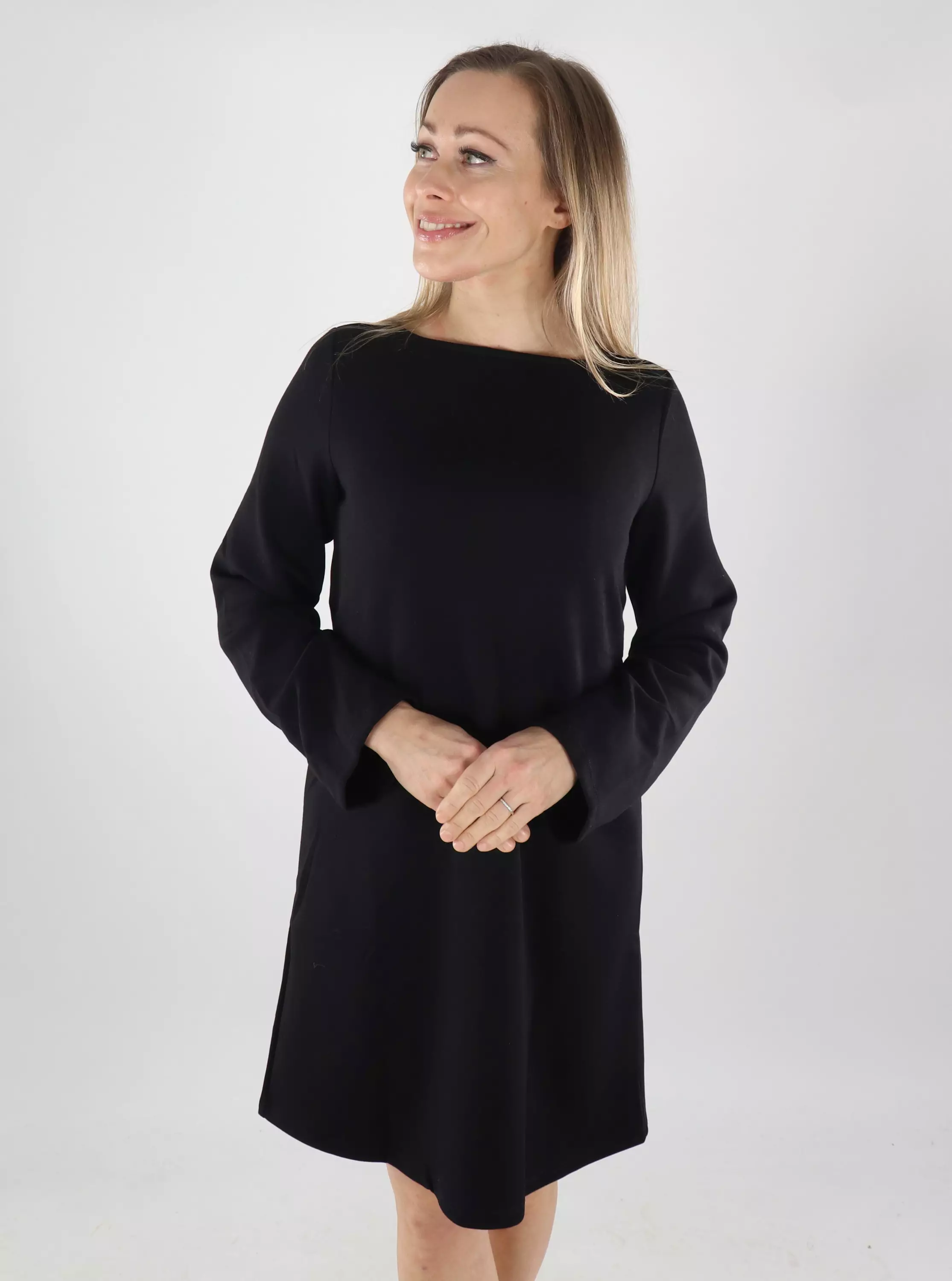 En stretchig och högkvalitativ klänning som känns bekväm att bära hela dagen. Båtringad och långa ärmar ger en klassisk, tidlös look som passar både vardags och fritid.