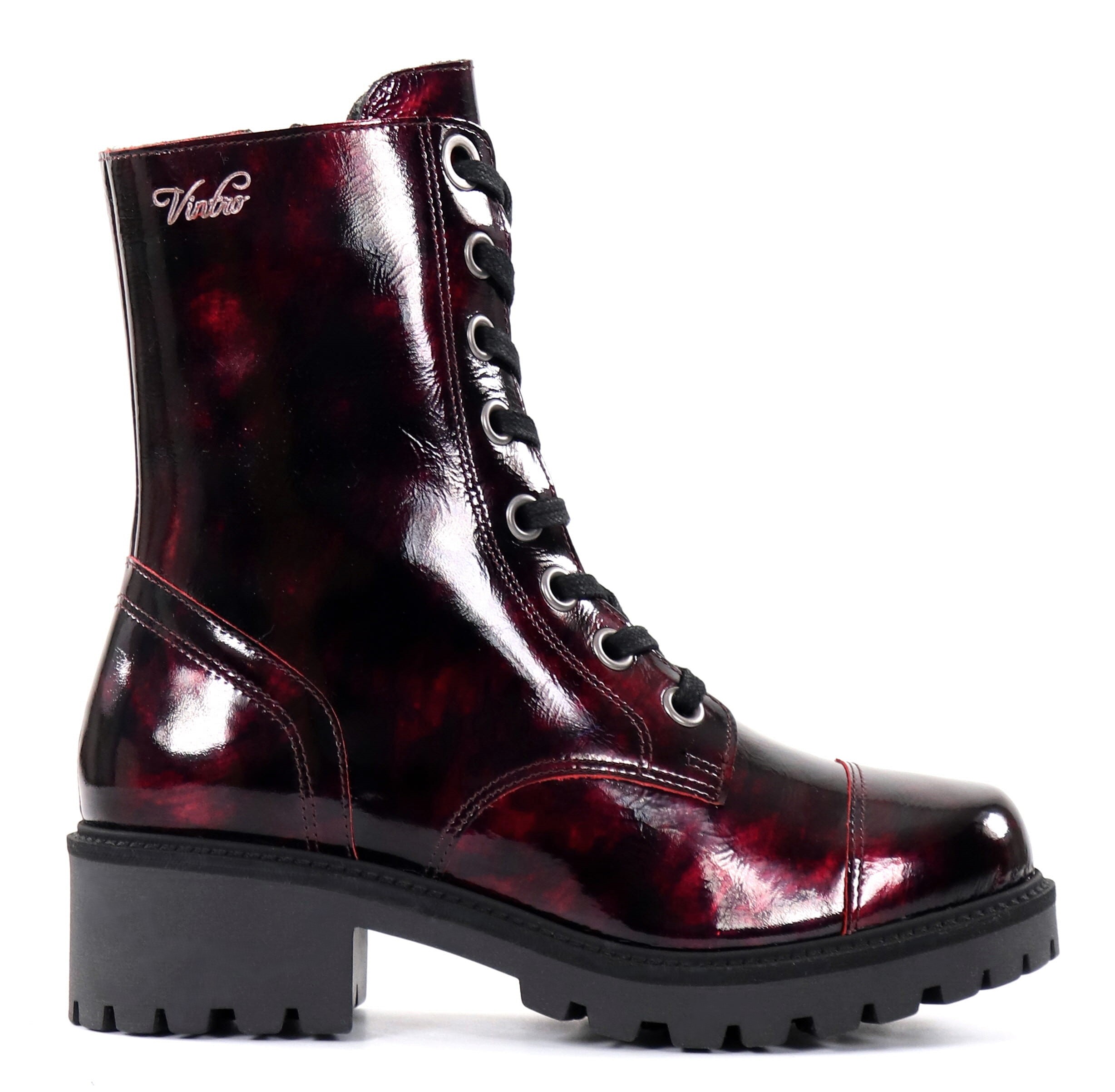 Ankelboots i lack med tunt foder i ullblandning och vattenavvisande behandling.