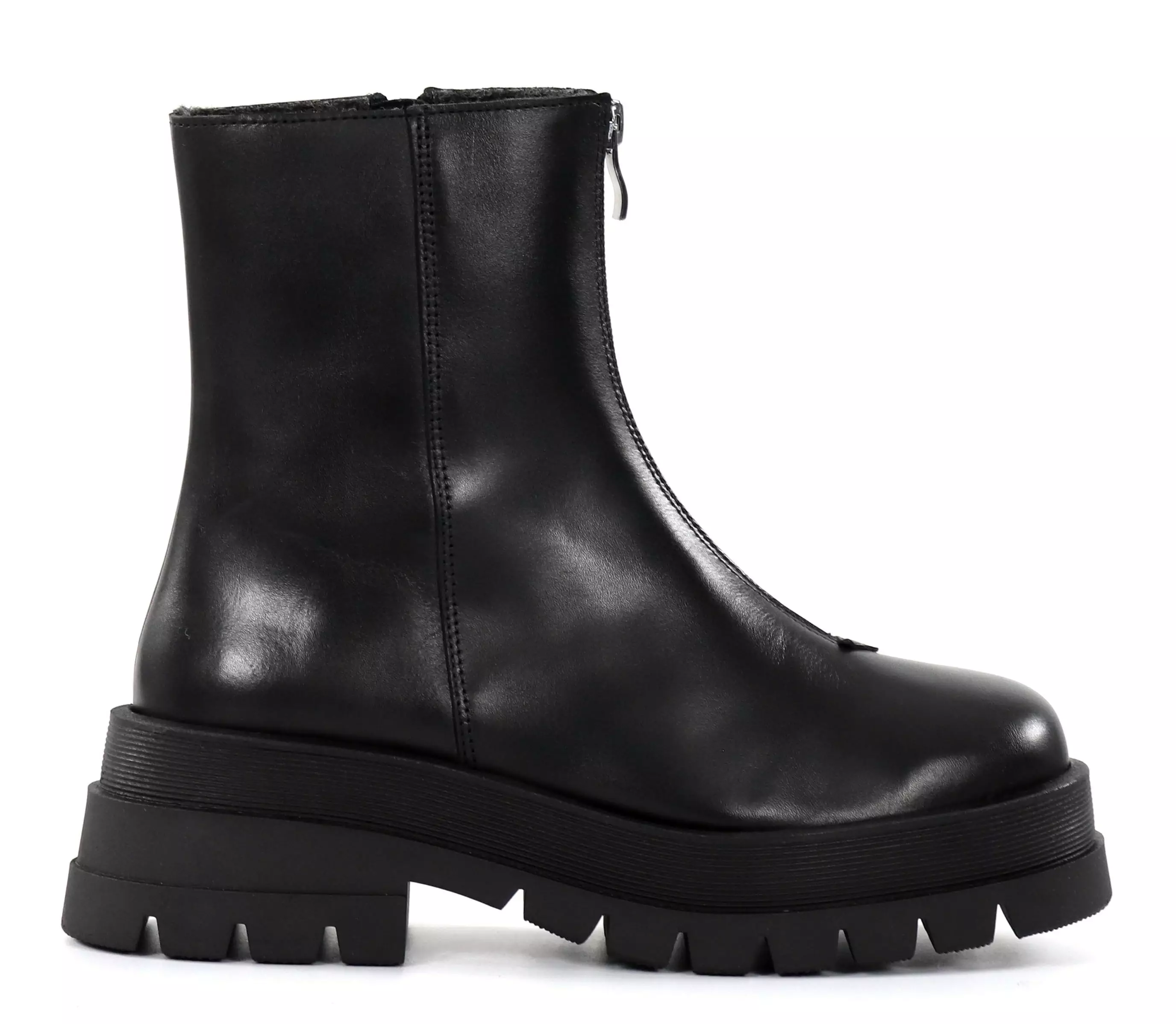 Tjocksulade, vattenavvisande Vintro ankelboots av högkvalitativt läder. Varmt ullblandningsfoder.