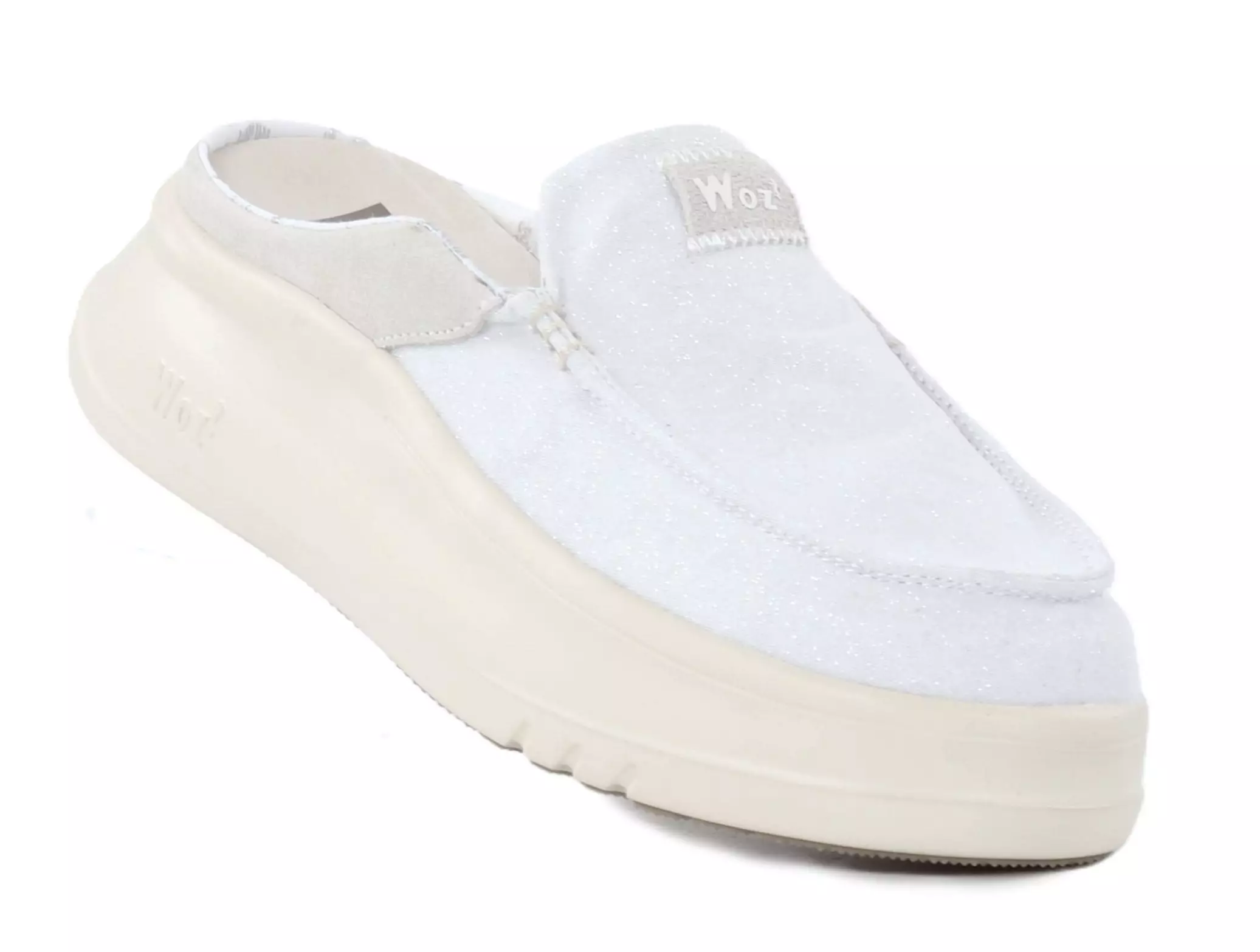 Vit Woz? tofflor är förtjusande med sin lätthet och glittriga ovandel! Vadderade, uttagbara innersulor ger komfort hela dagen. Ett enkelt och bekymmerslöst val för sommardagar!